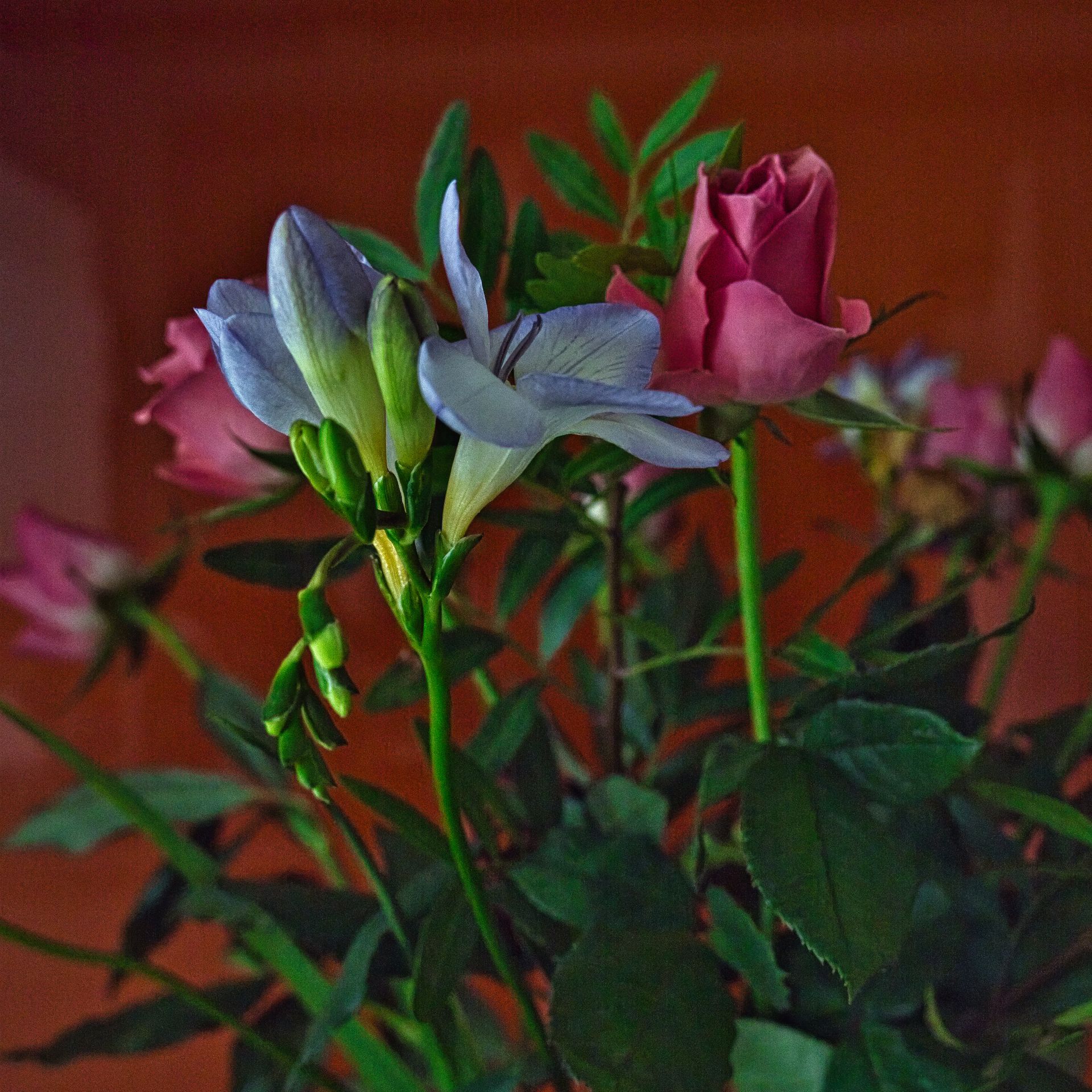 This is always a hotly debated subject among photographers, and I would say “it depends” quietly sitting on the fence!! Let me qualify, if your resulting image is destined to be shared on social media with very little post processing, and the image is correctly exposed, then most certainly use the .jpg format. Sharing any image to Facebook will result in a degraded image because Facebook processes the image for a small screen, Instagram images will be viewed usually on a smart phone, so a .jpg direct from a camera will suffice. For many years I used to shoot primarily in .jpg, and I’ve entered competitions with those images, when I had my Fuji cameras the RAW format images from the 24-megapixel sensor were 55 megapixel, so I tended to shoot mainly in .jpg. With my Olympus cameras and the 20-megapixel sensor the RAW images are more usable. Now, let’s examine the facts behind any decision: JPEG (.jpg) images are fully processed in camera, and all settings such as White Balance, Colour Saturation, Tone Curve, Sharpening, and Colour Space are applied to the image by the camera processor and are therefore ready to use. Many digital cameras allow changing the Colour Saturation, either by adjusting the Tone Curve, selecting a Film Simulation, or applying a LUT to the resulting image. LUT = Look Up Table, primarily used for video, but can be applied to a stills image. JPEG images are an 8-bit digital format, producing 16.8 million possible colours, (256 tonal values for Red, Green, and Blue channels) any other colours that your camera is capable of are discarded, and the “lossy” compression of a .jpg will result in a loss of data in an image, possibly displaying artifacts in a large, printed image. RAW images are a proprietary format tied to a specific camera manufacturer and must be post processed. My camera system produces a 12-bit digital image capable of producing 68.7 billion colours. The RAW image has far greater dynamic range, and colour gamut compared to a .jpg image. Highlights can be corrected, and shadow detail can be readily recovered from a RAW image. Personally, when I used to shoot in .jpg I tended to post process my images, applying a preset, and any cropping, so post processing the RAW images doesn’t take much more of my time. When I’ve been out taking a set of images, my workflow involves processing the first RAW image of the set, then copy / paste onto the following images. Attached to this post are two underexposed images of flowers, and the recovery of the RAW image has resulted in a reasonably usable image, the .jpg image is unusable with washed out colours. With the two photos of a model, one is the .jpg saved directly from the camera SD card, and the other has been post processed from the RAW – I have cropped both images to 2:3 ratio, I feel that the image post processed from RAW has a richer colour palette. In summation, .jpg for simplicity, and RAW for fine detail, and greater dynamic range.