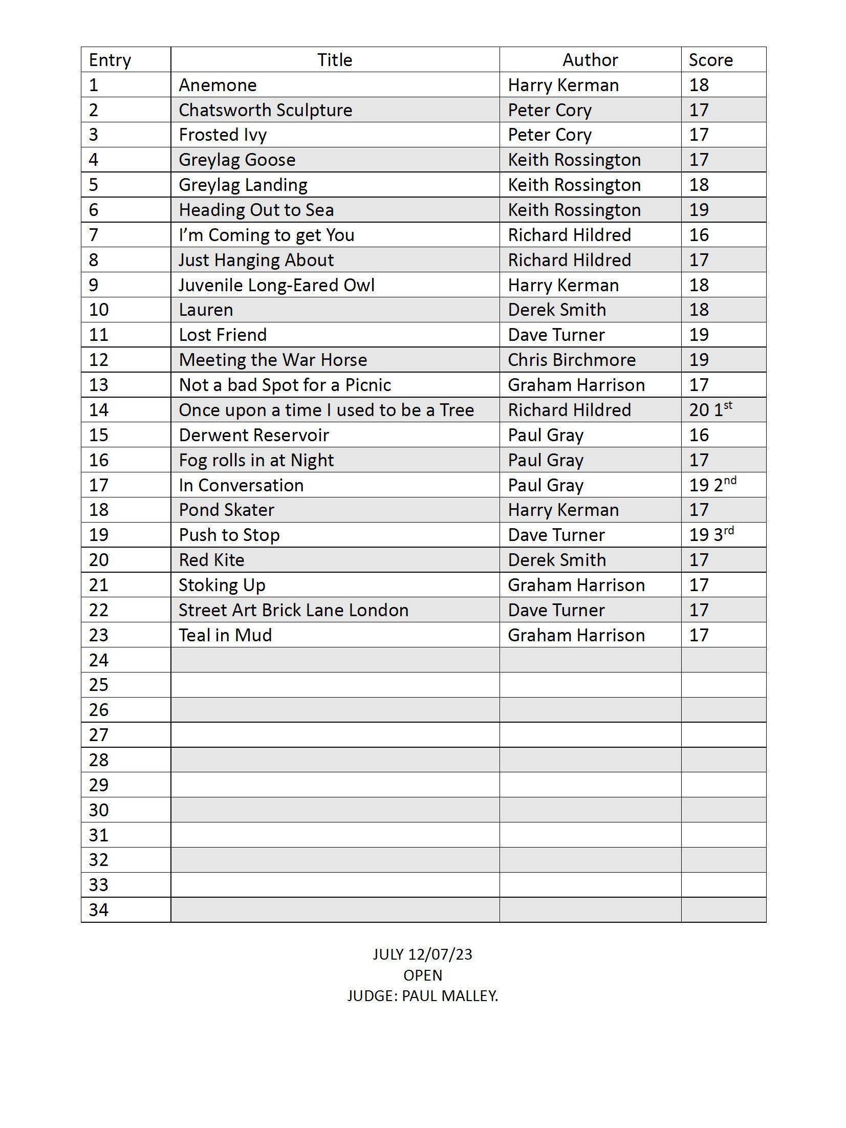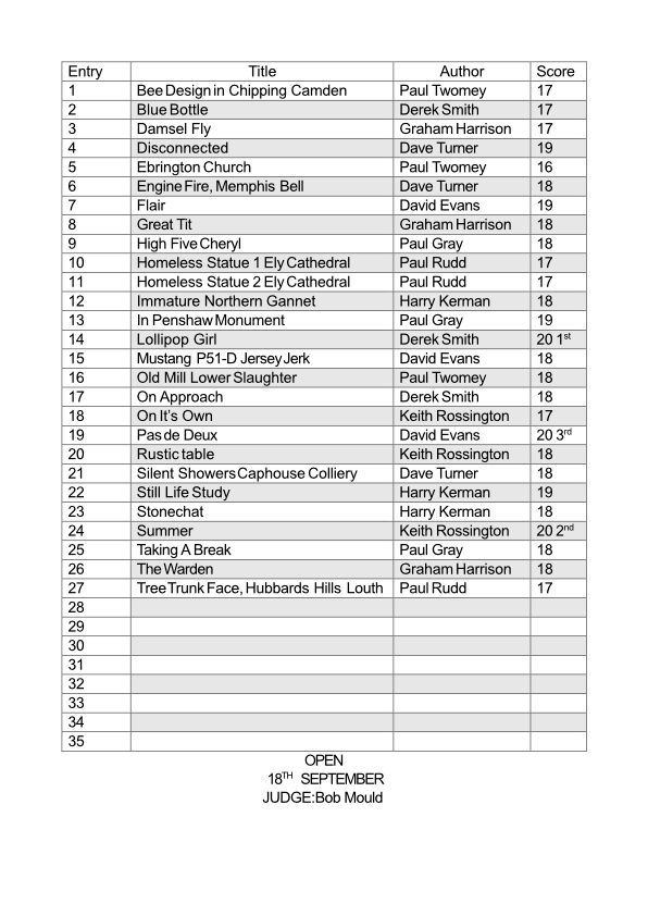 PDI Open Competition - 2nd November 2022