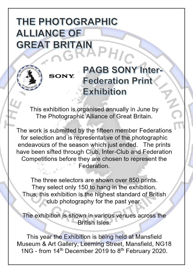 Good Morning All Last week Dave Bennett came to the club again, it has been a while since we have seen his photography but well worth the wait. Dave's photographs were excellent and his story telling along with AV's made it a very good night. This week, Wednesday 15th October, we are holding a print competition, with the categories of "Mono" and "Open", our judge for the evening will be Diane Seddon AFIAP CPAGB BPE3* she is well qualified to judge our prints. The following week we are going to try a retro night again, with Transparencies taken prior to the year 2000, please let me know if you want to take part and have a time slot allotted, time will depend on the numbers wanting to take part. Regards Graham