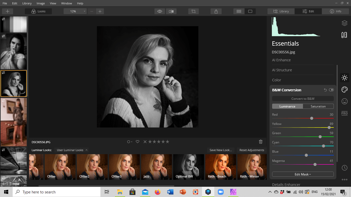With the portrait photo of Leah Maraki successfully converted to black and white, all that is needed is to boost the contrast, and reduce the exposure to obtain a perfect result.